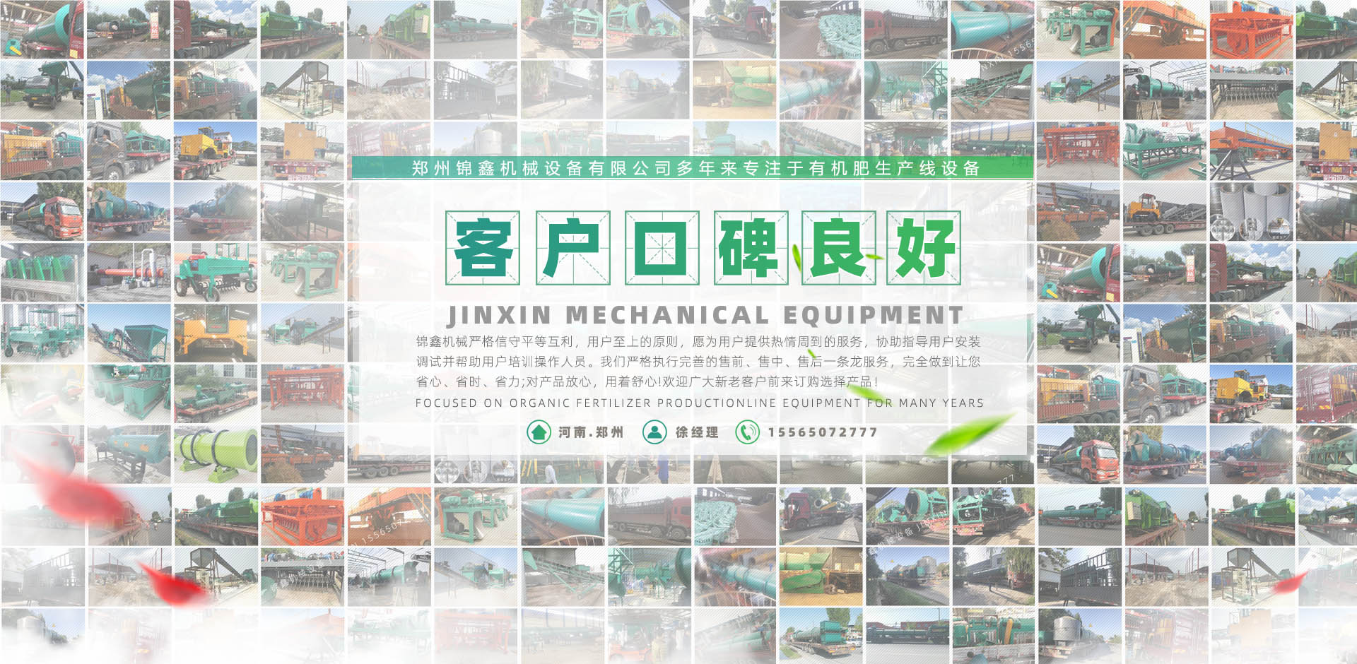 鄭州錦鑫機械設備有限公司,位于機械之鄉(xiāng)的河南省滎陽市,它交通便利,連霍高速公路、鄭州西南繞城高速、隴海鐵路、鄭西客運專線貫穿全境,南水北調、西氣東輸在這里交匯。   公司有技術團隊為企業(yè)生產(chǎn)肥料加工設備,有的合作伙伴,科學、規(guī)范的客戶培訓體系;還有積極健康的企業(yè)文化,不斷創(chuàng)新的管理體制和經(jīng)營模式和日益完備的經(jīng)銷網(wǎng)絡。它交通便利,310國道、連霍高速公路、鄭州西南繞城高速、隴海鐵路、鄭西客運專線貫穿全境,南水北調、西氣東輸在這里交匯。   鄭州錦鑫機械設備有限公司是生產(chǎn)有機肥設備機械的企業(yè),產(chǎn)品:有機肥設備,有機肥造粒機,復合肥設備,復合肥造粒機,新型有機肥攪齒造粒機,對輥擠壓造粒機,有機肥生產(chǎn)線,有機肥加工設備,復合肥生產(chǎn)設備,有機肥造粒設備,雞糞烘干機,轉鼓造粒機,bb肥設備等遠銷各地,品質深受肯定! ...